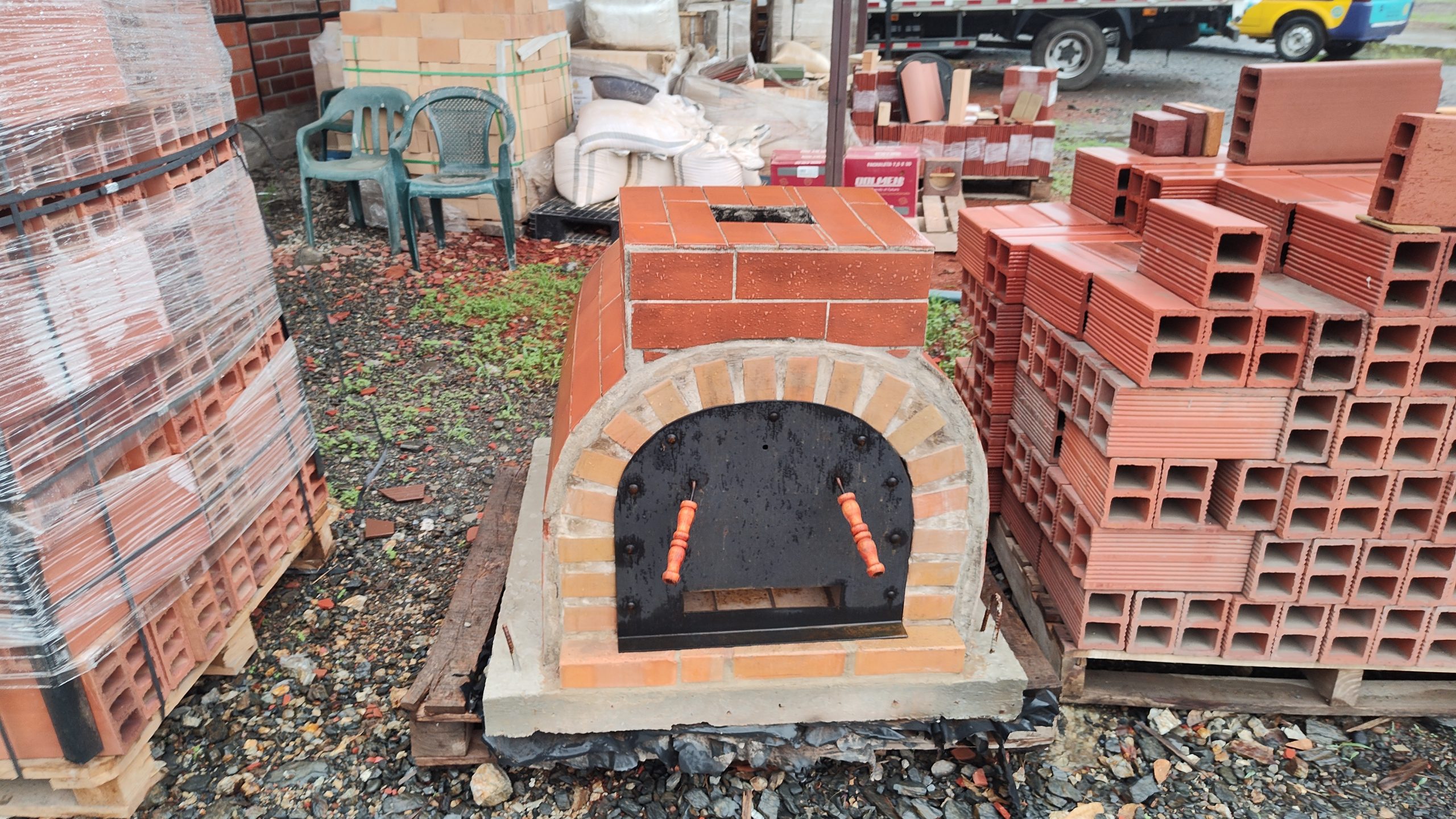 Horno fabricado con ladrillos refractarios y arcilla refractaria, incluye puerta, termometro, interior mide 55 de ancho por 80 cm de profundidad. Ideal para familias pequeñas, aqui puedes hornar costillas de cerdo, una pierna, un pavo, funciona a leña. Temperatura máxima de trabajo: 500 grados centígrados.